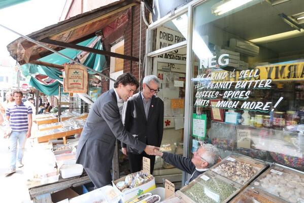 Justin Trudeau and City Councillor Adam Vaughn visit Kensington Market on May 22, 2014. Photo courtesy of Justin Trudeau via Twitter